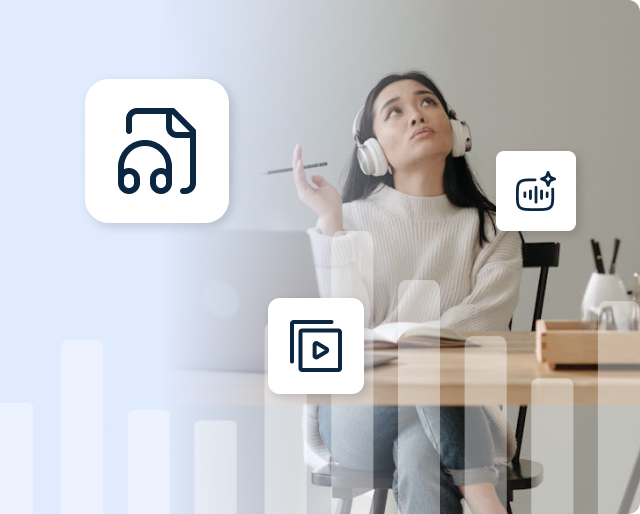 Transcribe audio into text instantly, with support for multiple formats like MP3, MP4, WAV, M4A, MPEG, and more.